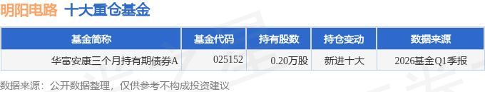 持有明阳电路最多的基金为华富健康三个月持有期债券A,现在规划为0.49亿元,最新净值1.039(4月24日),较上一交易日跌落0.02%。该基金现任基金司理为戴弘毅。
